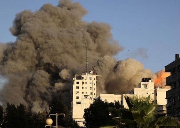 وذكر المراسلون أن طائرات إسرائيلية أطلقت صاروخين “تحذيريين”، ثم ثمانية صواريخ أدت إلى تدمير كلي للبرج وألحقت أضرارا جسيمة في عدد من البنايات المجاورة، في وقت يتواصل القصف الإسرائيلي العنيف للقطاع لليوم الثالث.