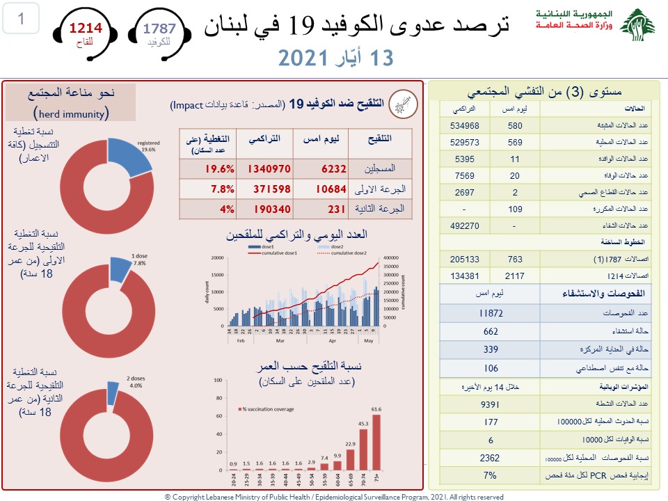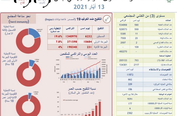 أخر الأخبار وزارة الصحة: تسجيل 20 حالة وفاة و580 إصابة جديدة بفيروس كورونا By F.S مايو 13, 2021 لا توجد تعليقات featured