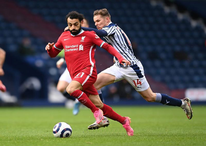 وتمكن ليفربول أخيرا من معادلة النتيجة في الدقيقة 33، عندما تلقى صلاح كرة من زميله ماني، ليسددها منخفضة نحو القائم البعيد لمرمى وست بروميتش.