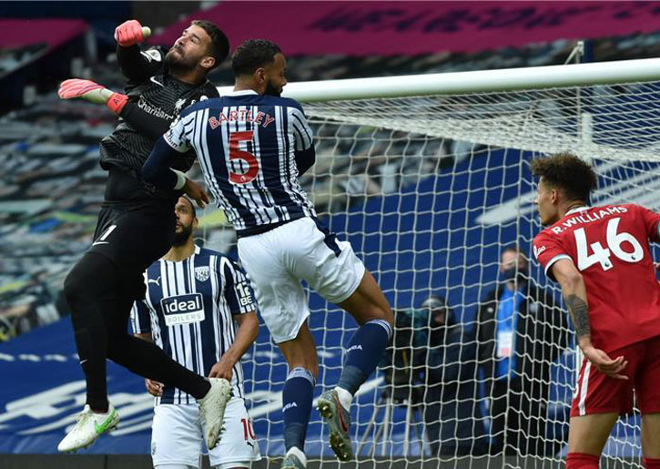 قاد الحارس البرازيلي أليسون بيكر فريقه ليفربول للفوز خارج دياره على وست بروميتش ألبيون 2-1 مساء الأحد، ضمن الجولة السادسة والثلاثين من الدوري الإنجليزي الممتاز.