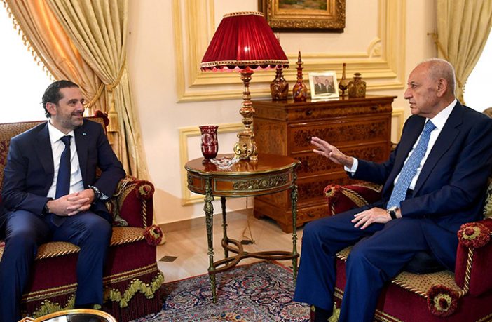 التقى بري الحريري في حضور المعاون السياسي للرئيس بري النائب علي حسن خليل ومستشار الرئيس الحريري هاني حمود، واستبقاهم الى مائدة الغداء، حيث صدر بيان مقتضب بعد اللقاء تبين انه متوافق عليه بين الرئيسين وجاء فيه: ناقش اللقاء مسار تشكيل الحكومة والمراحل التي قطعتها وقد كانت الاجواء ايجابية.