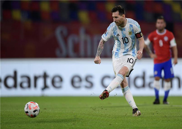 هز ليونيل ميسي الشباك من ركلة جزاء في الشوط الأول لكن الأرجنتين اكتفت بالتعادل 1-1 مع ضيفتها تشيلي في تصفيات أمريكا الجنوبية المؤهلة إلى كأس العالم لكرة القدم 2022 والتي أقيمت فجر يوم الجمعة.