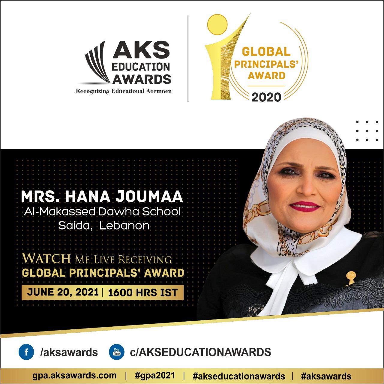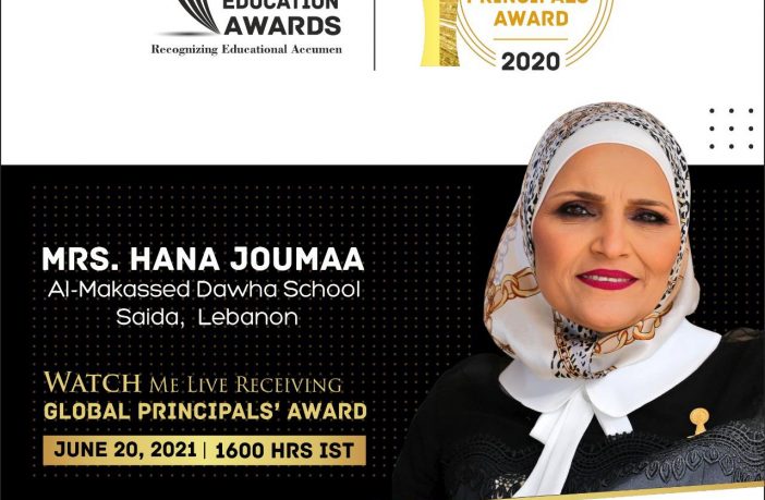 فازت الأستاذة هنا جمعة الزعتري، وهي مديرة من دوحة المقاصد في صيدا بجائزة Global principals’ awards متحدية كل المعوقات والمعاناة ومتمسكة بالأمل. وقد مثلت لبنان من ضمن مجموعة المدراء الذين تم اختيارهم من بين 100 دولة ومن ضمن 1000 مشارك من مختلف دول العالم. وتتسلم شهادتها الإفتراضية في ال 20 من حزيران الحالي.