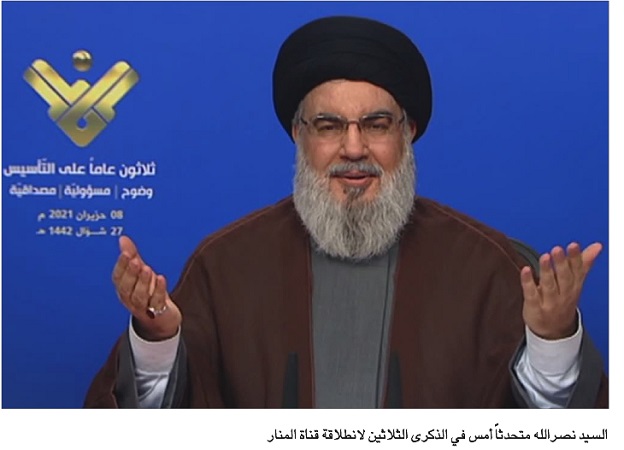 تناول السيد نصرالله الوضع اللبناني بالتفصيل، في كلمته بمناسبة العيد الثلاثين لقناة المنار، فنفى أي أساس لفكرة عدم إجراء الانتخابات النيابية في موعدها، سواء بالذهاب إلى انتخابات مبكرة اعتبرها دون جدوى وترجمة لخلفيّات فئويّة لا وطنيّة، أو بما يُحكى عن فرضية تأجيل الانتخابات، مؤكداً أن الأمر لم يرد في حساب حزب الله، وهو يرفضه، وشدّد السيد نصرالله على أن الأولويّة تبقى لتشكيل حكومة، وكل طروحات أخرى صرف للنظر عن جوهر الأزمة، داعياً الجميع للانصراف لتذليل العقد من طريق تشكيل الحكومة الجديدة.