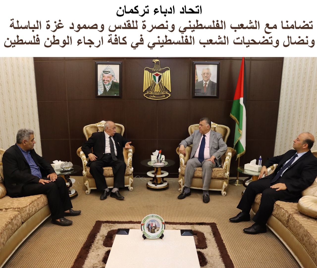 بِقيم الوفاء لفلسطين والتمسك بأصالة تاريخية لدور التركمان تجاه القضية الفلسطينية كانت كلمات عظيمة للسيد اسعد شاكر امين رئيس الاتحاد تعبر عن نصرة القضية الفلسطينية وابعد من معاني التضامن بل التطوع للنضال من اجل فلسطين ونصرة للقدس وتحريرها معتبرا ان هذا موقف راسخ للتركمان ودورهم عبر محطات ومواقف ثابته وهو حديث ايضا عبر عنه عضوي الاتحاد الوفد الكريم وفي اللقاء بحضور السيدة نوار نزال نائب سعادة السفير نظمي حزوري.