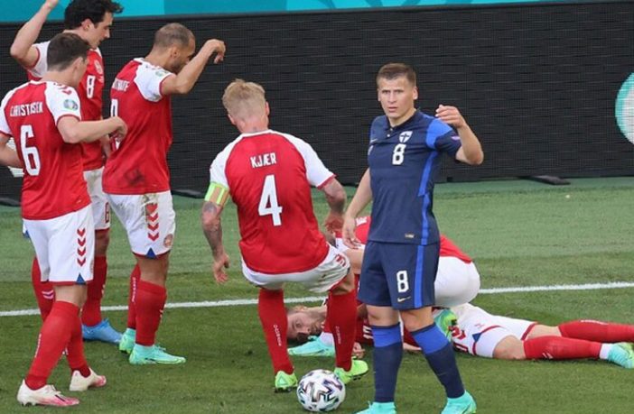 حبست وعكة صحية قوية مفاجئة تعرض لها النجم الدنماركي، كريستيان إريكسن، الأنفاس، خلال مباراة بلاده مع فنلندا في اليوم الثاني من كأس أوروبا لكرة القدم، في كوبنهاغن.