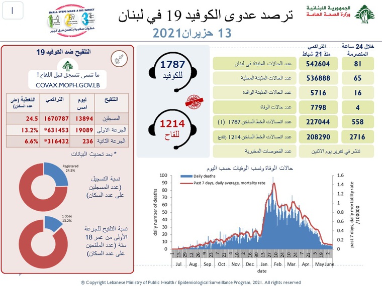 محليات وزارة الصحة: تسجيل 4 حالات وفاة و81 إصابة جديدة بكورونا By F.S يونيو 13, 2021 لا توجد تعليقات featured وزارة الصحة