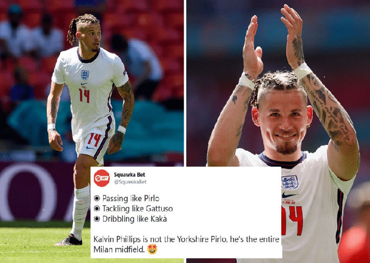 موقع سكواكا علق على أداء فيليبس مع إنجلترا أمام كرواتيا وقال “يُمرر مثل بيرلو، يلتحم مثل جاتوزو، يُراوغ مثل كاكا”.