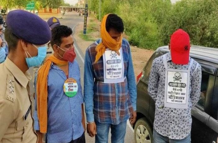 وفرضت شرطة مقاطعة نيواري بولاية ماديا براديش ارتداء علامة «رأس الموت» التي ترمز للتحذير من الخطر على مجموعة من القرويين، مع عبارة على الملصقات تقول «لا تقترب مني، لست مطعماً، أرجوك ابتعد عني»، كنوع من العقاب لتجاهلهم تلقي اللقاح المضاد لفيروس «كوفيد-19».