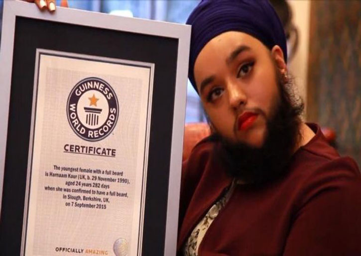 حطمت عارضة الأزياء البريطانية “حرنعام كور” رقمها القياسي السابق في موسوعة جينيس للأرقام القياسية، بعد اكتمال لحيتها.