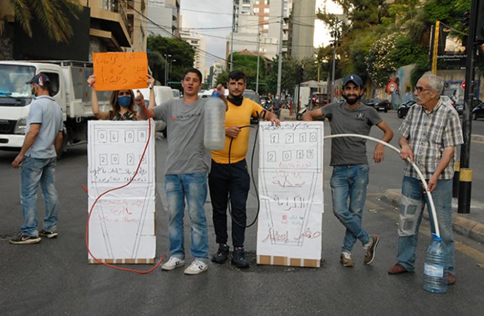 وحمل المحتجون لافتات تنتقد «الإذلال أمام محطات الوقود وارتفاع سعر الدولار وفقدان الأدوية».