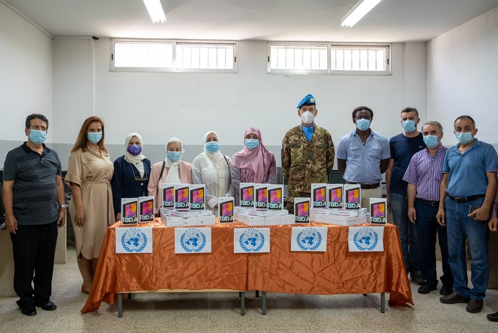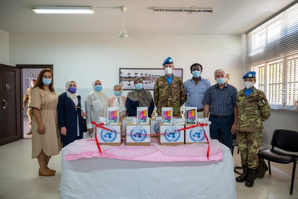 قام قائد القطاع الغربي في اليونيفيل الجنرال دافيد سكالابرين ورئيسة فرع صور في جمعية بيت المرأة الجنوبي الدكتورة رفاه شحادي قصير بزيارتين إلى كل من مدرسة صور الرسمية المتوسطة للبنات وثانوية صور الرسمية للبنات وذلك لتسليم ١٢٠ حاسوب لوحي تعليمي بعد ان كانت الجمعية قد تقدمت بطلب الى مكتب الشؤون المدنية في اليونيفيل لتمويل ٦٠ جهازا لكل مدرسة دعما للطالبات خلال فترة التعليم عن بعد ومن ثم لاستخدامها في مختبر الكمبيوتر عند عودة التعليم المباشر.