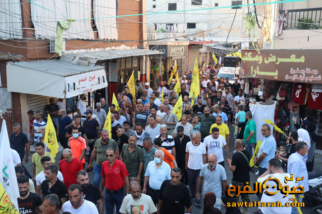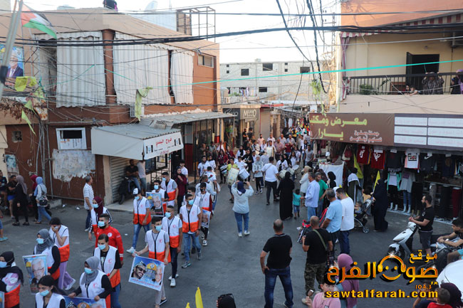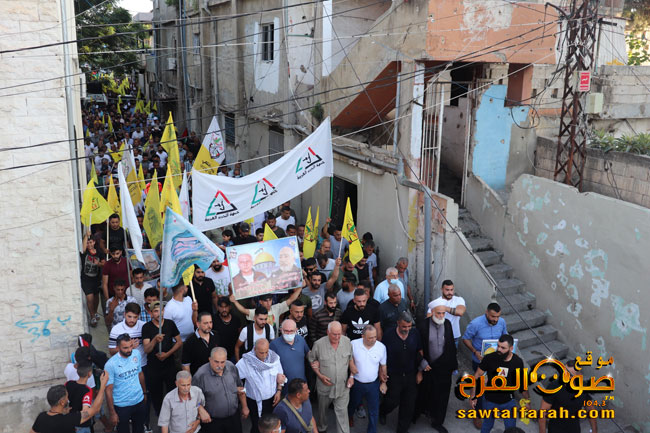 ثم جابت المسيرة الحاشدة في شوارع وساحات مخيم البص حيث علت منها هتافات الدعم والتاييد للرئيس محمود عباس والاجهزة الامنية والمسجد الاقصى وحي الشيخ جراح وبيتا كما رفعت الصور الرئيس محمود عباس والشهيد الرمز ياسر عرفات والاعلام الفلسطينية واعلام فتح على وقع الاغاني الثورية الفلسطينية التي تشيد بحكمة وحنكة القياد الفلسطينية وفي مقدمتها الرئيس أبو مازن وحركة فتح ٠