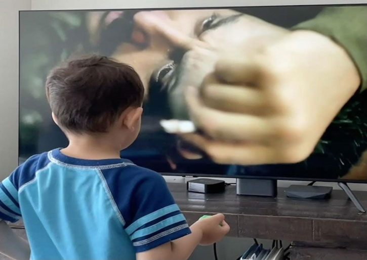 نشر الممثل قصي خولي صورة لإبنه الوحيد أثناء مشاهدة والده في مسلسل “عشرين عشرين”.