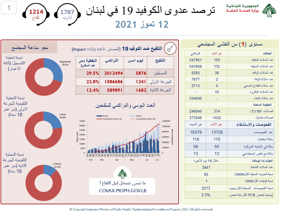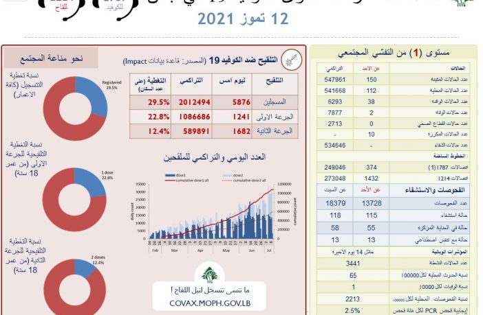 محليات 150 إصابة جديدة بفيروس كورونا وحالتا وفاة By F.S يوليو 12, 2021 لا توجد تعليقات كورونا وزارة الصحة