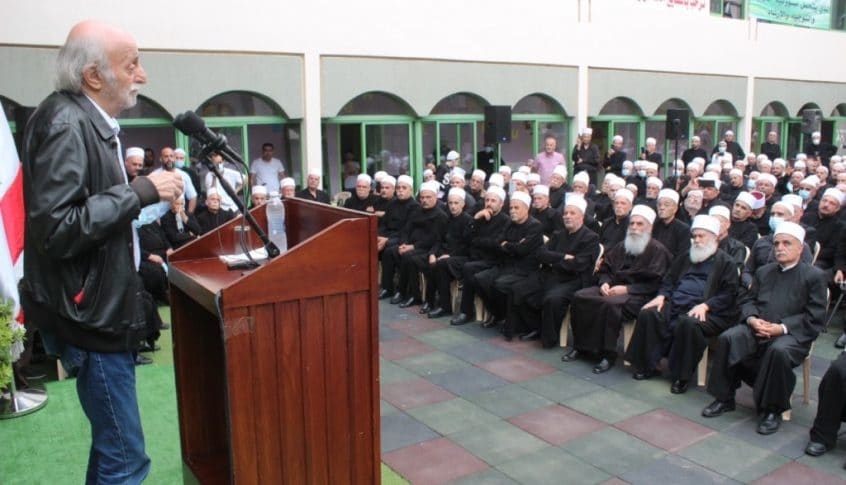 والقى جنبلاط كلمة قال فيها: “إنه القدر والوصية، هو قدري، وهو وصية كمال جنبلاط والشيخ علي زين الدين بأن أرث رسالة العرفان، تلك المؤسسة في التعليم والتوحيد والاخلاق والكفاح والتسامح وعند الضرورة كانت في الحرب. لذلك كنت معكم وسأبقى، وسيبقى تيمور معكم، وكل إمكانيات الحزب التقدمي الاشتراكي والامكانيات الشخصية في هذه المرحلة الدقيقة والتي يبدو ستكون أصعب، لكن هذا القدر ولا مفر منه”.