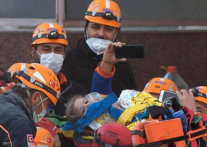 انتشلت فرق الإنقاذ، الثلاثاء، طفلة تركية على قيد الحياة بعد بقائها تحت الأنقاض 91 ساعة، في مدينة أزمير التي ضربها زلزال مدمر، الجمعة
