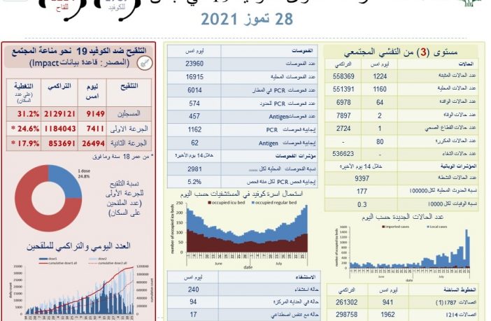 محليات وزارة الصحة: تسجيل 1224 إصابة جديدة بكورونا و حالتي وفاة By F.S يوليو 28, 2021 لا توجد تعليقات وزارة الصحة