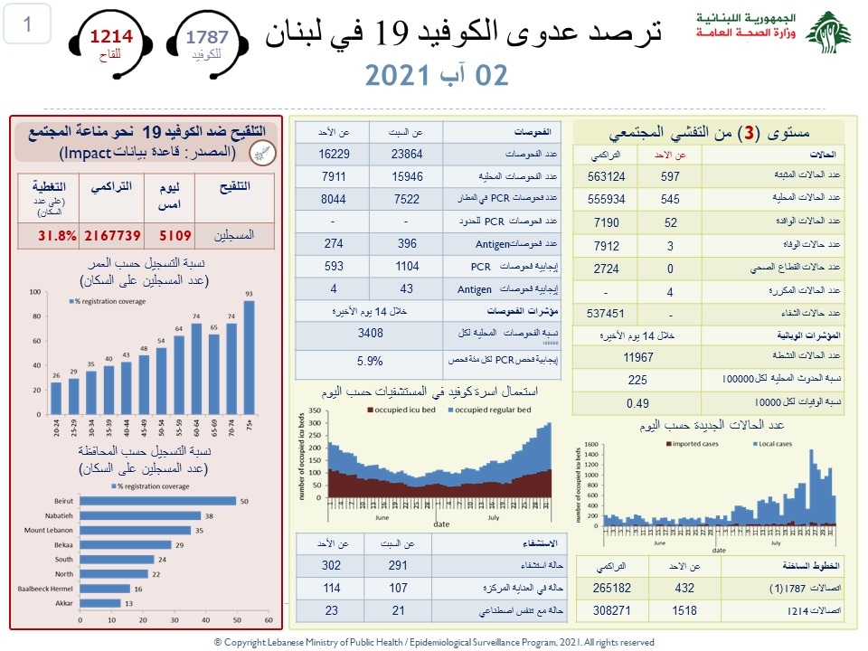 محليات وزارة الصحة تسجيل 597 اصابة جديدة بفيروس كورونا و3 حالات وفاة By F.S أغسطس 2, 2021 لا توجد تعليقات وزارة الصحة