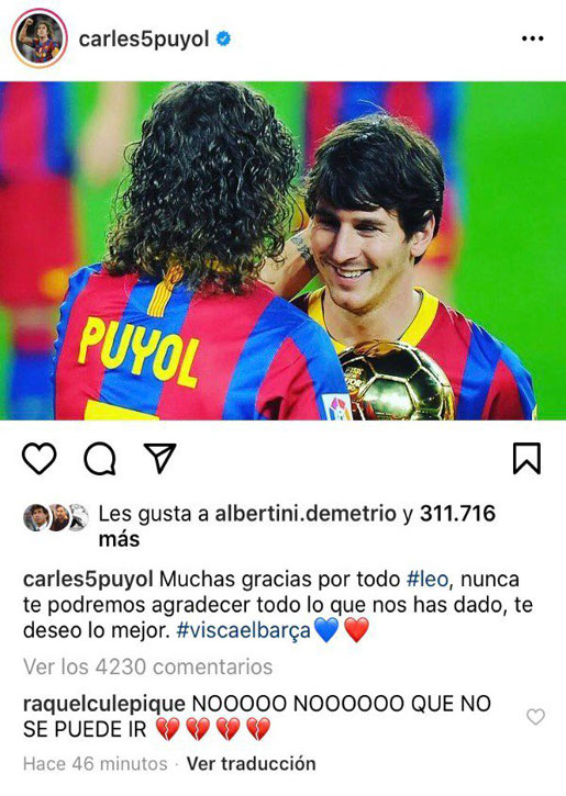 ونشر بويول، على حسابه بشبكة إنستجرام، صورة له مع ميسي، وكتب عليها “شكرًا جزيلاً لك على كل شيء يا ليو”.