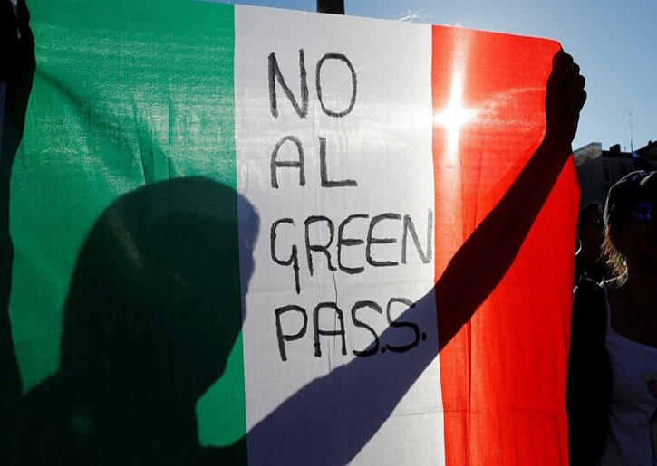 شهدت كل فرنسا وإيطاليا تظاهرات ضد الزامية الشهادة الصحية وضرورة إبرازها عند ارتياد بعض الاماكان العامة والمطاعم وغيرها، ضمن الإجراءات المتبعة للحد من انتشار فيروس كورونا.