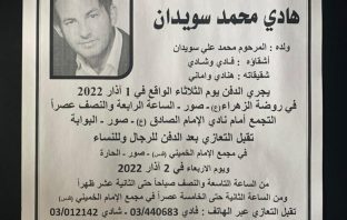 وفاة فقيد الإغتراب الحاج علي يوسف زين سويدان