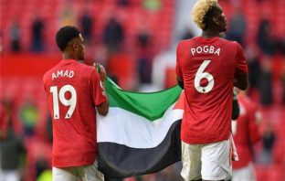 رياضة عالمية بوجبا وديالو يرفعان علم فلسطين في مباراة مانشستر يونايتد وفولهام مايو 18, 2021 حرص الفرنسي بول بوجبا وزميله أماد ديالو، على إظهار دعمهما لفلسطين، عقب مباراة مانشستر يونايتد وفولهام في الدوري الإنجليزي الممتاز. مانشستر يونايتد تعادل إيجابيًا أمام فولهام بهدف لمثله في البريميرليج…