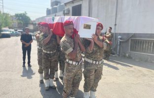 شيع الجيش اللبناني واهالي بلدة دبعال في قضاء صور الشهيد المجند في الجيش اللبناني احمد فادي فاضل الذي استشهد بانفجار وادي زبقين امس بحضور ممثل قائد الجيش العماد رودولف هيكل،…
