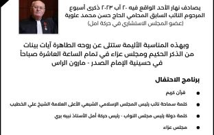 مصطفى الحمود بمناسبة الذكرى السنوية الأولى لرحيل النائب السابق المحامي حسن علوية، اقيم مجلس عزاء عن روحه الطاهرة و إطلاق وتوزيع كتاب “مع الإمام السيد موسى الصدر” الذي لخص محطات…