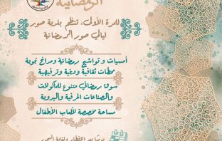 أخبار عاجلة للمرة الأولى… ليالي صور الرمضانية .. قريباً فبراير 16, 2026 للمرة الأولى… ليالي صور الرمضانية .. قريباً تنظم بلدية صور، للمرة الأولى، ليالي صور الرمضانية، لتُضيء أمسيات الشهر الفضيل بأجواء إيمانية وثقافية وترفيهية. – أمسيات من وحي الشهر الفضيل -…